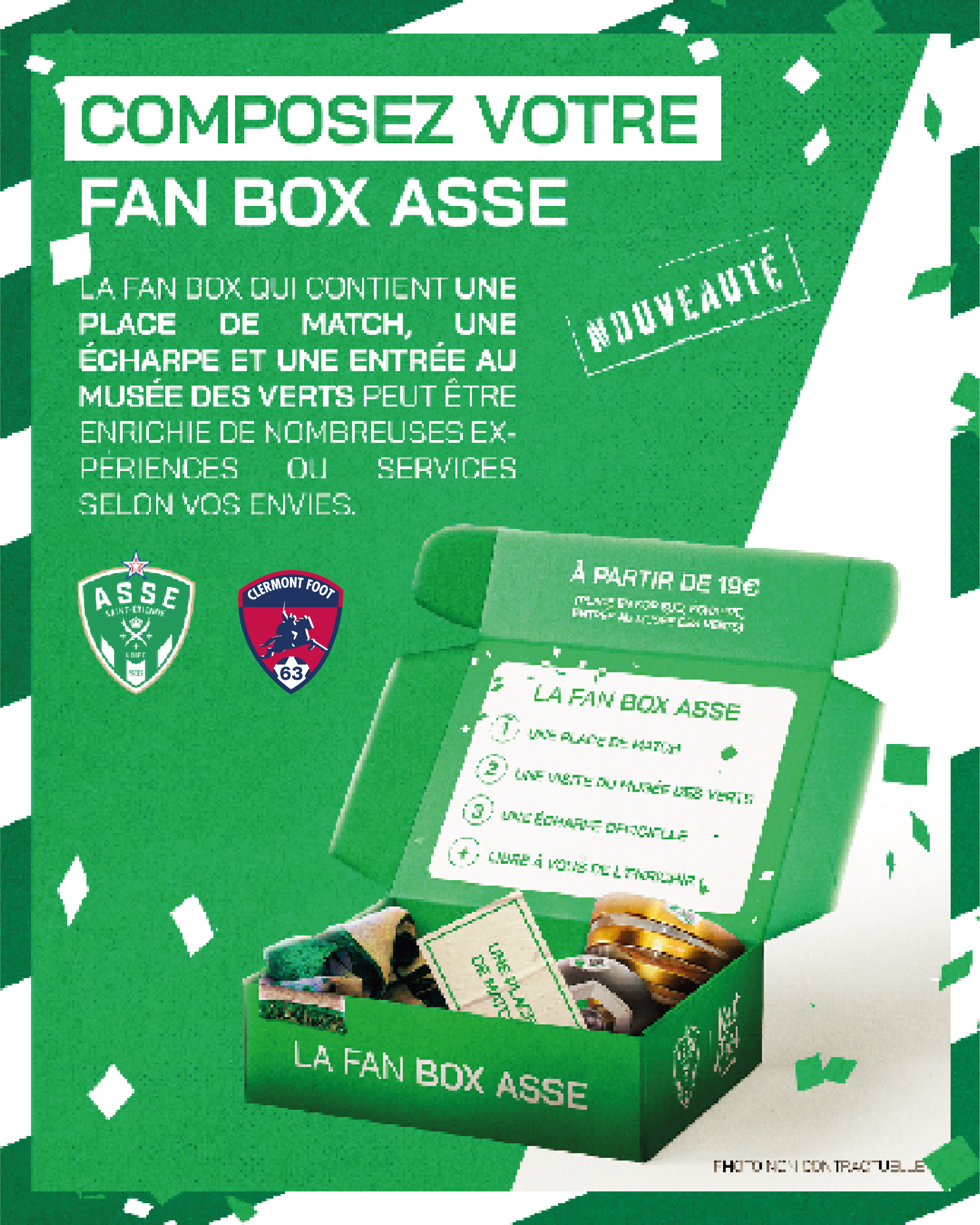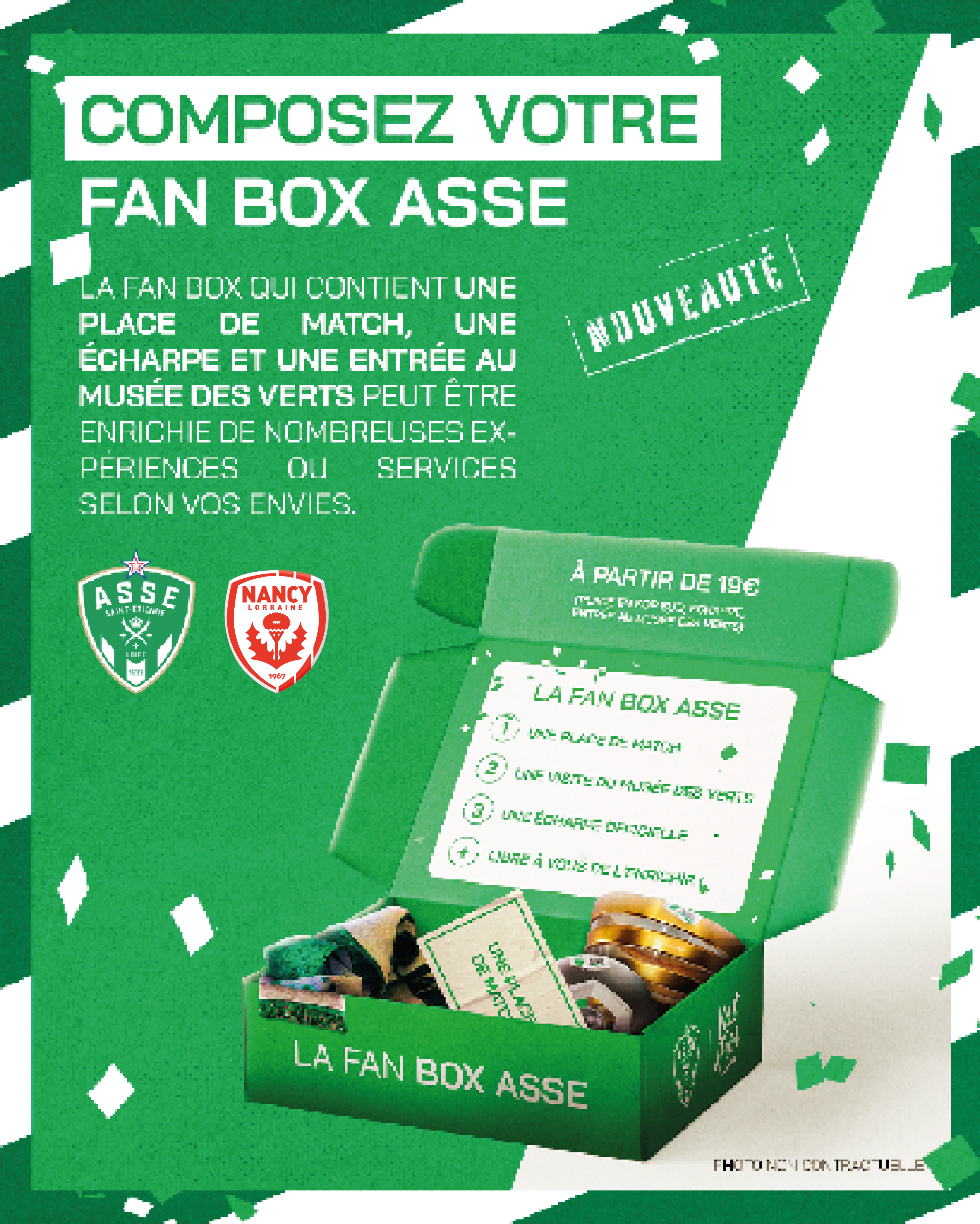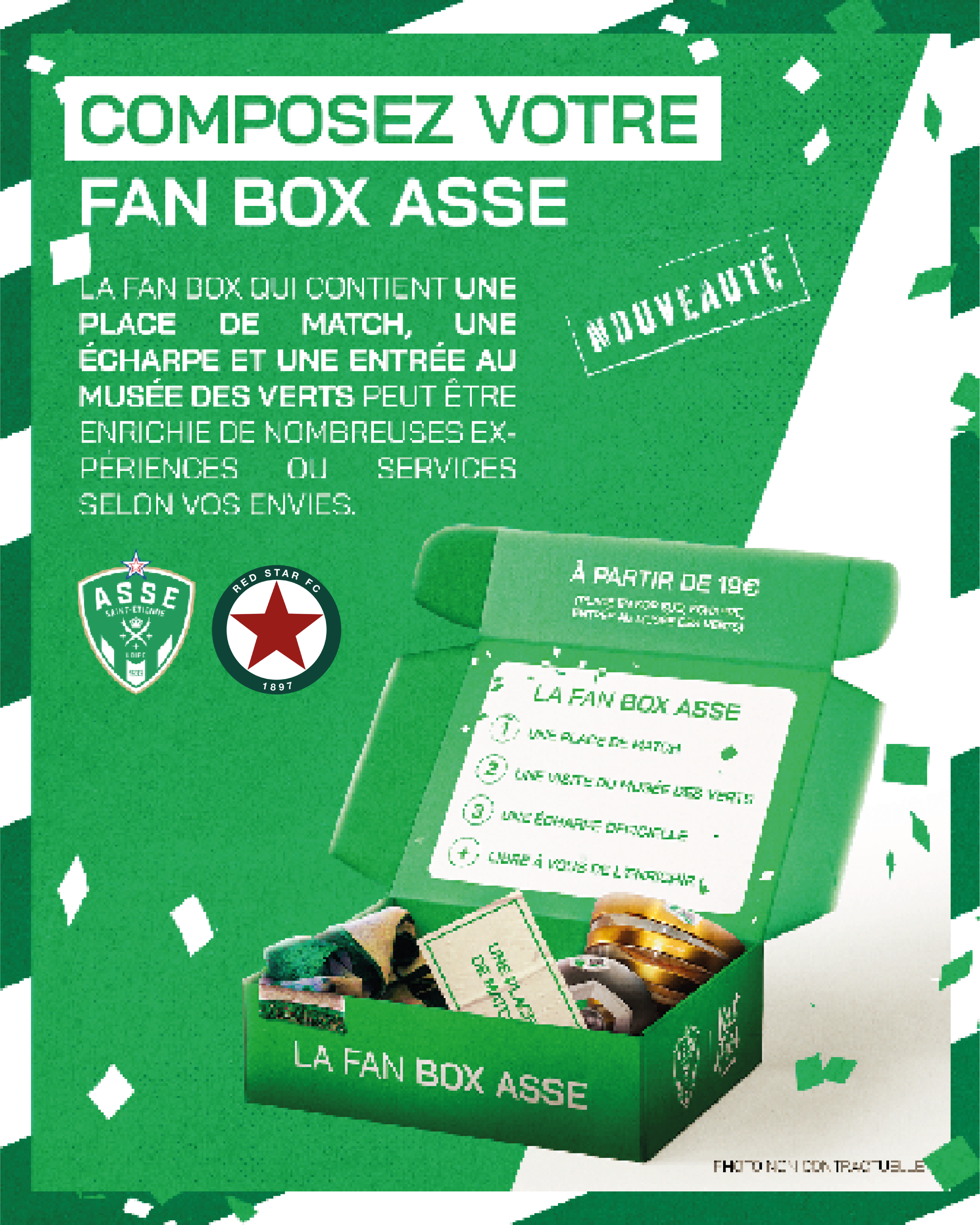 Votre Fan Box doit être a minima composée d'1 place de match, d'1 visite du Musée des Verts et d'1 écharpe officielle.