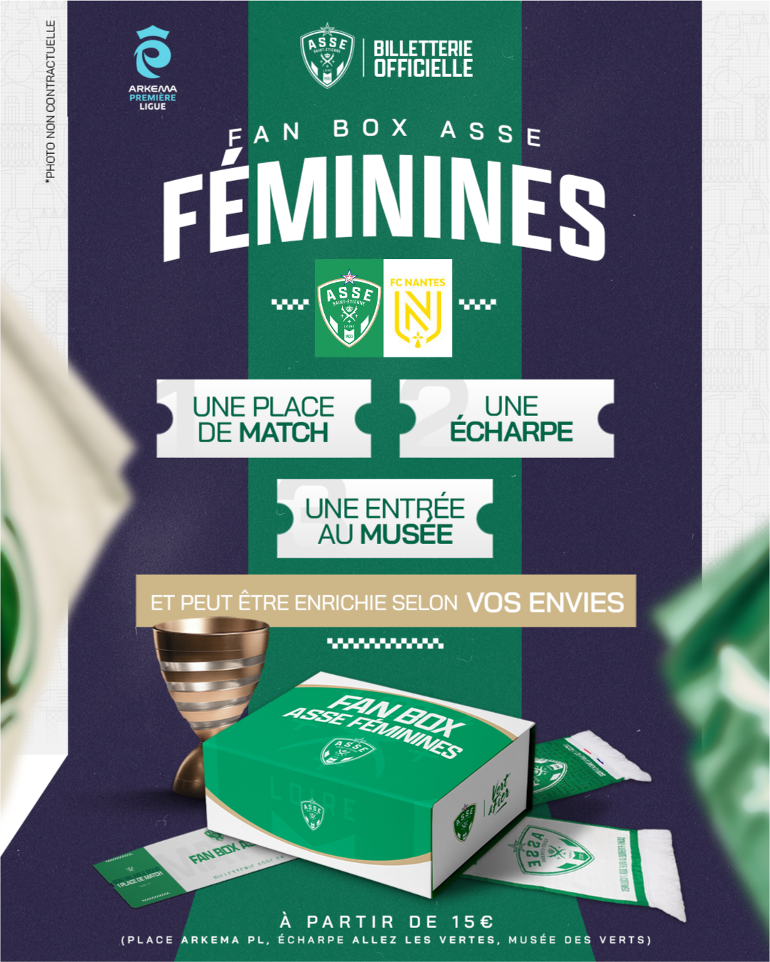 Votre Fan Box doit être a minima composée d'1 place de match, d'1 visite du Musée des Verts et d'1 écharpe officielle.