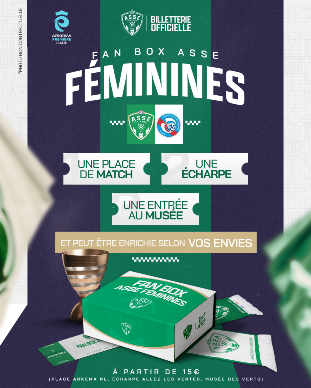 Votre Fan Box doit être a minima composée d'1 place de match, d'1 visite du Musée des Verts et d'1 écharpe officielle.