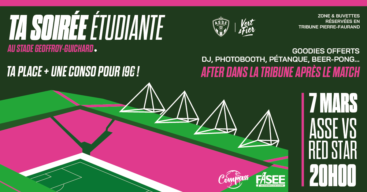 🎓 Ta Soirée Étudiante 🍻🥳 La soirée étudiante fait son grand retour pour ASSE 🆚 Red Star ! 💚
