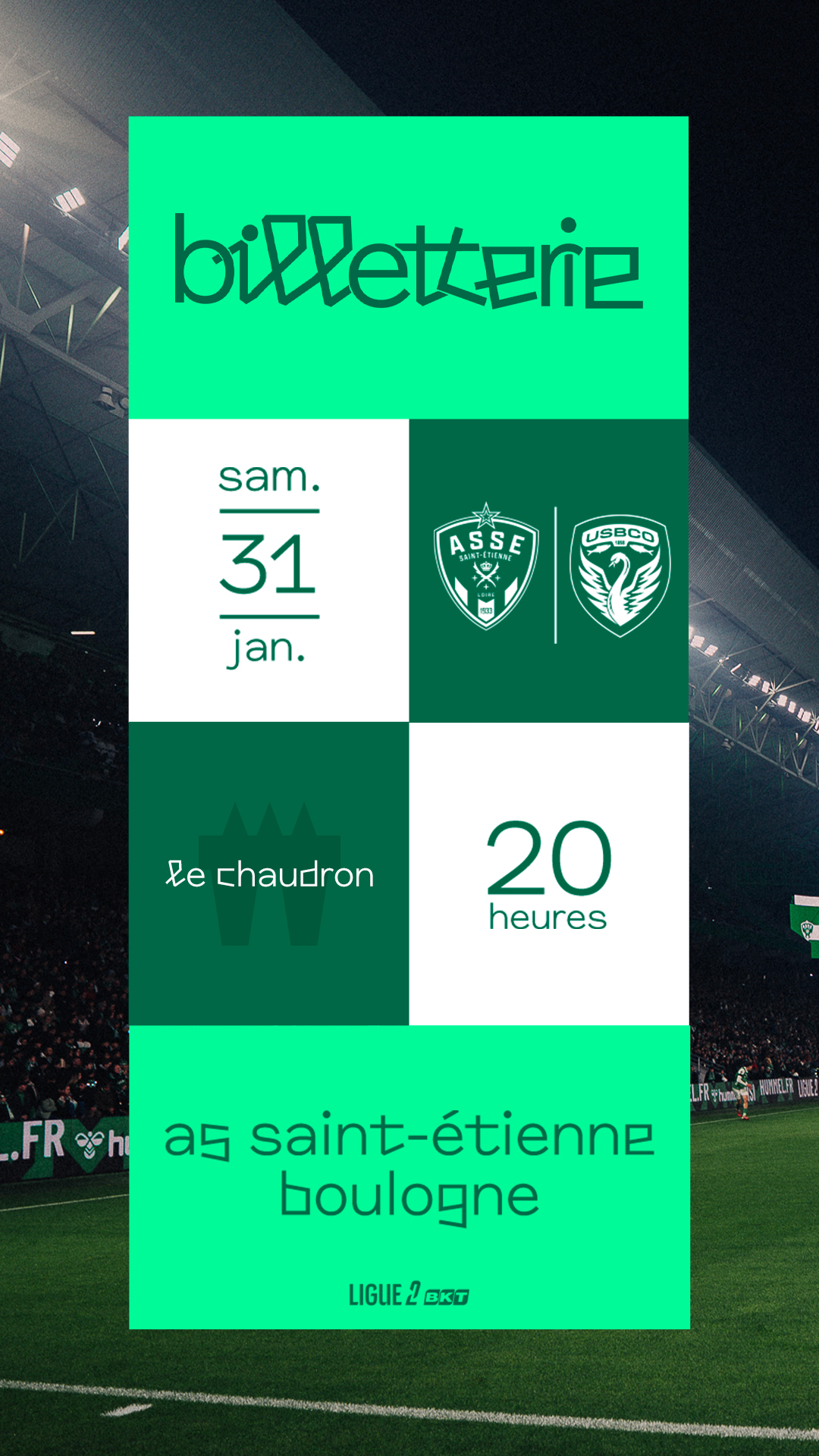 📅 Samedi 31janvier 2026 -🕗 20h00 -📍 Stade Geoffroy-Guichard