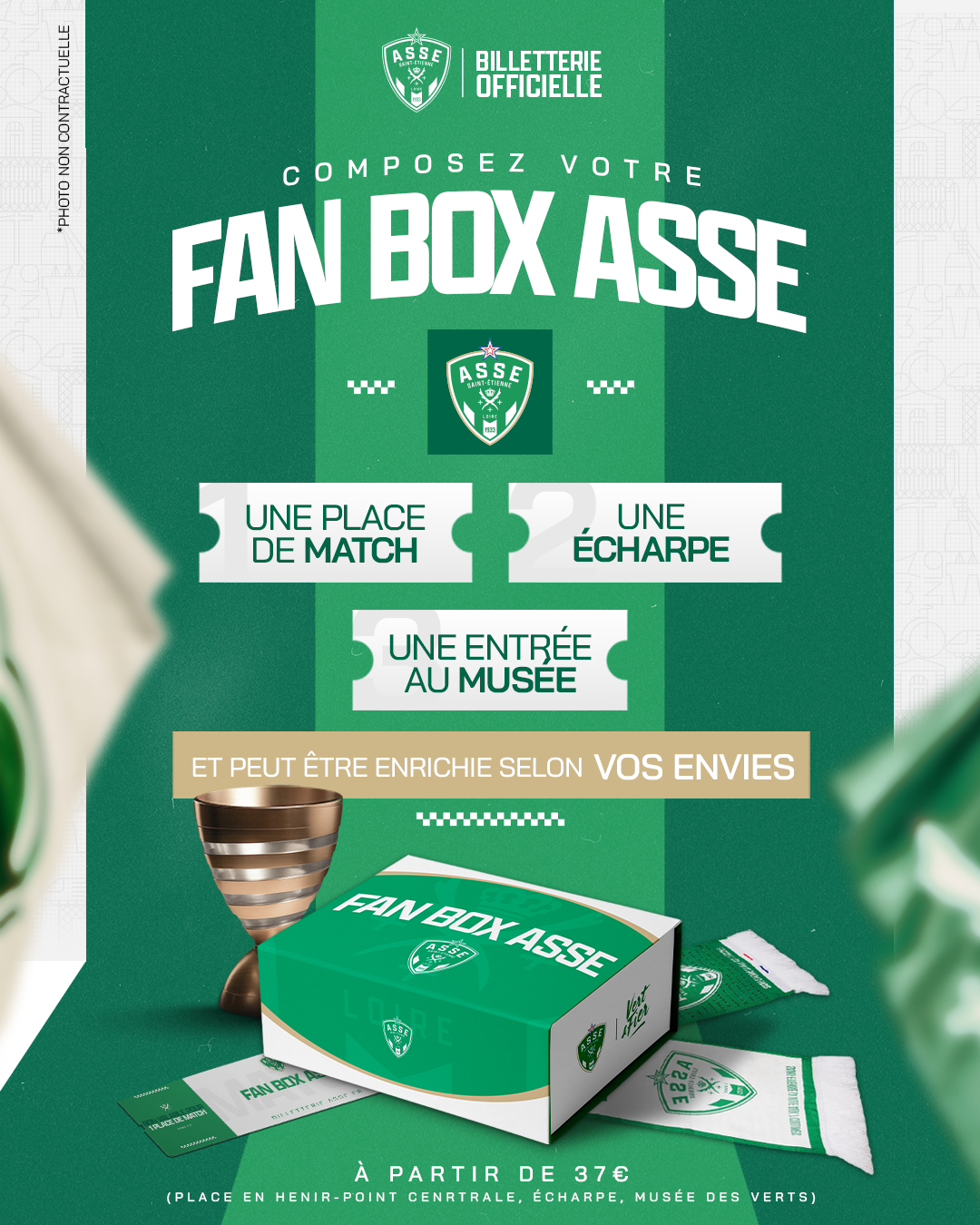 Votre Fan Box doit être a minima composée d'1 place de match, d'1 visite du Musée des Verts et d'1 écharpe officielle.